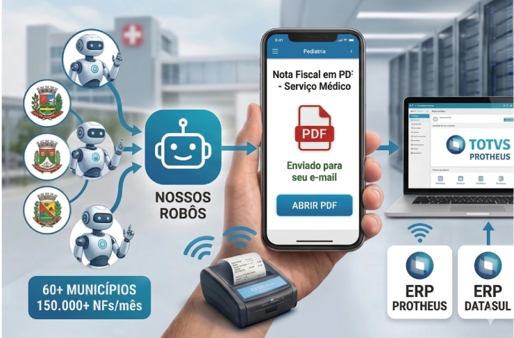 Aqui no Brasil a parte fiscal é bem complexa e existe um processo denominado escrituração de notas fiscais se serviços tomados ou NFTS, onde a empresa que tomar serviço de outras empresas que residem fora do município são obrigadas a escriturar/informar o seu município de origem sobre essas movimentações. Um de nossos clientes de capital aberto e com um volume muito grande de notas para escriturar nos procurou para resolver esse problemas, resultado: 8 robos criados e mais de 4 mil notas escrituradas automaticamente todos os meses.