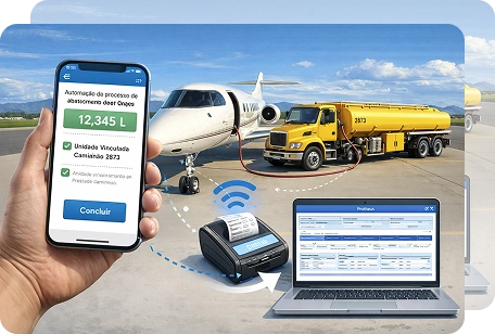 Nesse projeto nossa missão era automatizar o processo de abastecimento das aeronaves que envolvia varias pessoas e era efetuado manualmente. Para solucionar esse problema criamos um aplicativo mobile que faz a leitura do tanque da aeronave e vincula ao caminhão que efetuou o abastecimento, imprimindo todo o processo e uma impressora sem fio. Tudo isso integrado ao Protheus gerando pedido de venda para que o nosso cliente possa seguir com o faturamento do serviço prestado